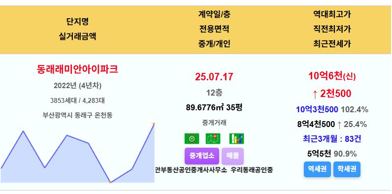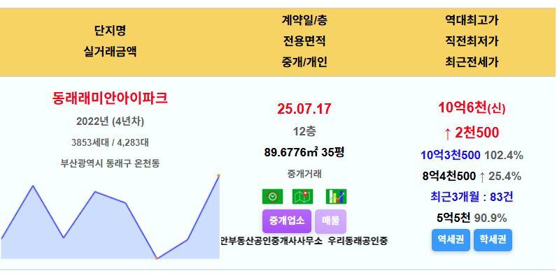 부산 동래구 동래래미안아이파크 36평 10.6억 신고가