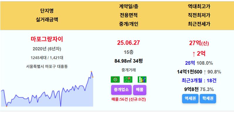 마포그랑자이 34평 27억 신고가