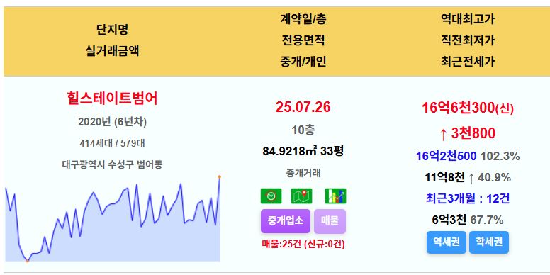 포항 포항펜타시티한신더휴4단지 33평 3.95억 신고가
