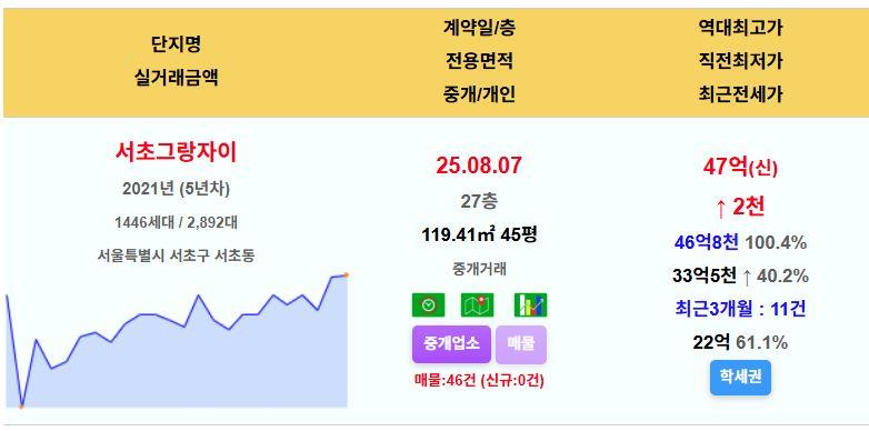 분당구 양지마을(금호1) 47평 25.9억 신고가