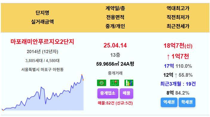 마포구 마포래미안푸르지오2단지 24평 18.7억 신고가