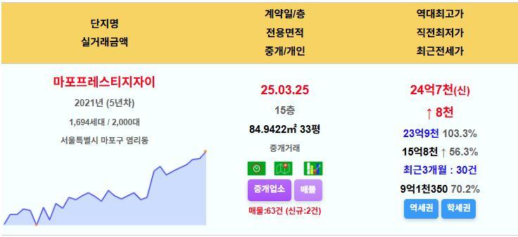 마포프레스티지자이 34평 24.7억 신고가