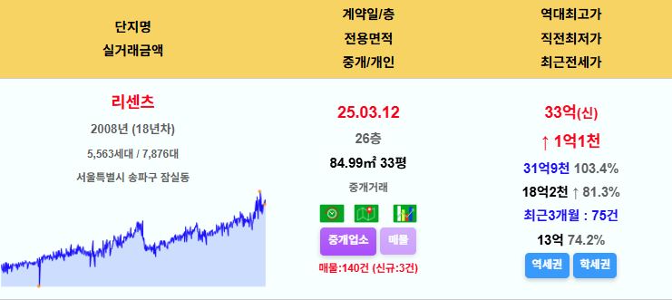 송파 리센츠 33평 33억 신고가