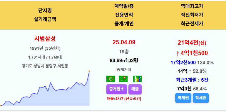 중구 삼성사이버빌리지 33평 14.65억 신고가