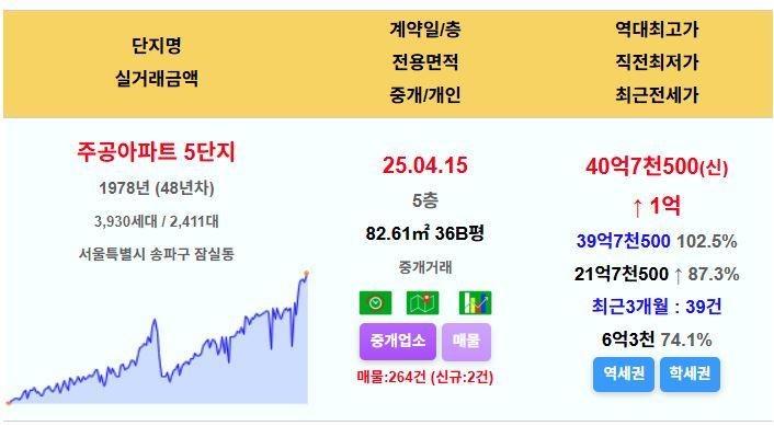 잠실주공5단지 36평 40.75억 신고가