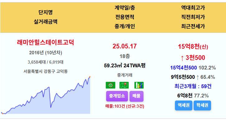강동구 래미안힐스테이트고덕 24평 15.8억 신고가