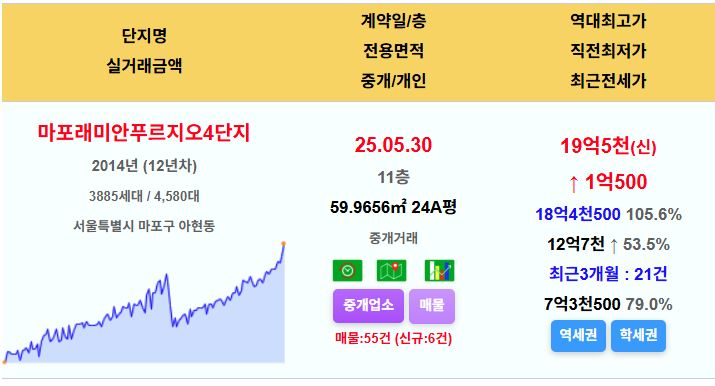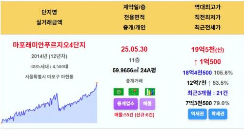 마포구 마포래미안푸르지오 24평 19.5억 신고가