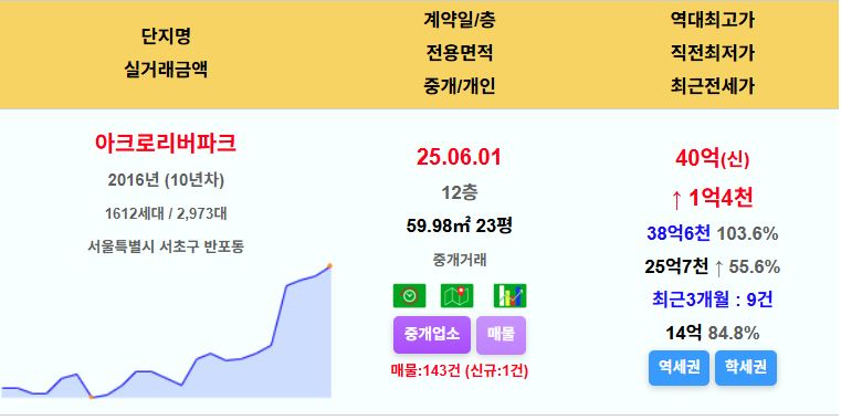 동작구 상도역롯데캐슬파크엘 29평 15.2억 신고가