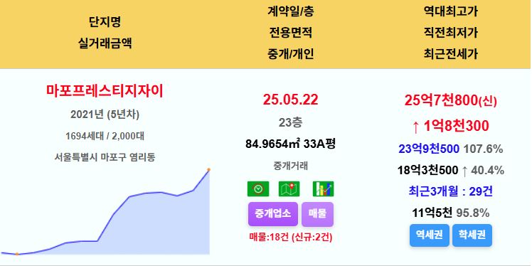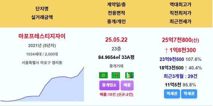 마포구 마포프레스티지자이 33평 25.78억 신고가
