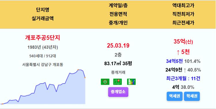 강남구 개포주공5단지 35평 35억 신고가