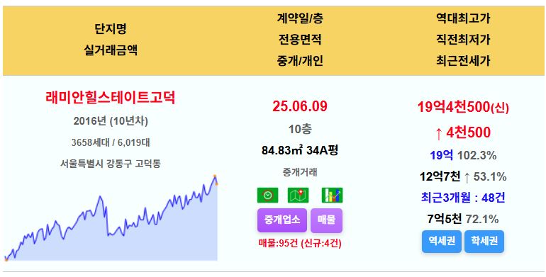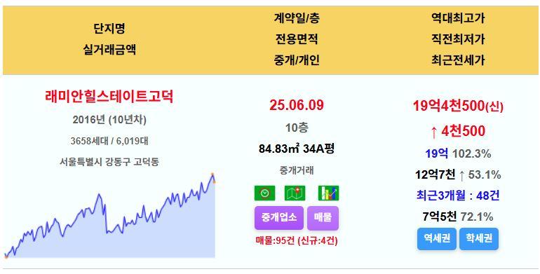 강동구 래미안힐스테이트고덕 34평 19.45억 신고가