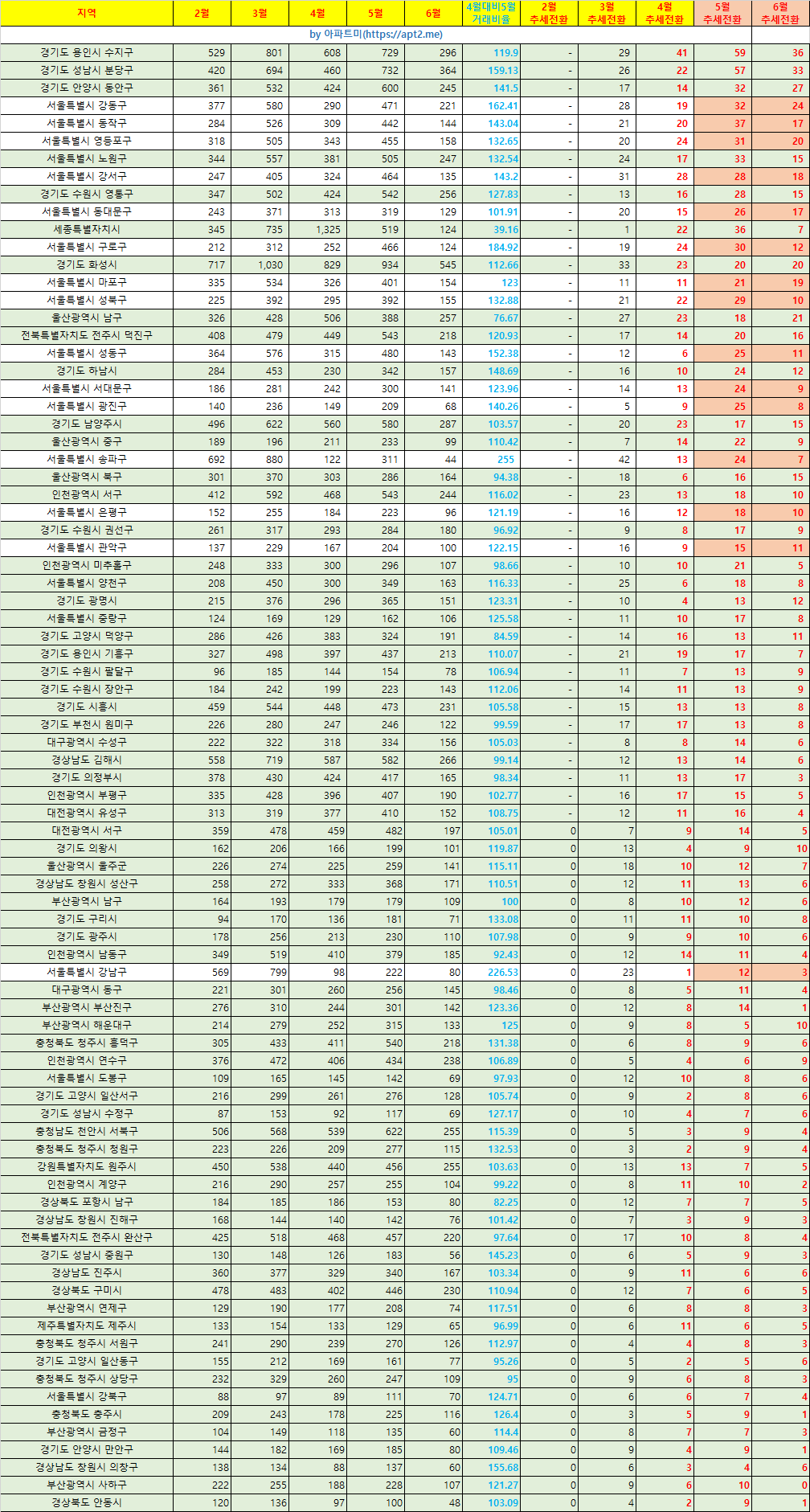 기존흐름이 바뀌는 실거래흐름에 대한 자료  이미 상승세가 강한 지역은 의미가 적음