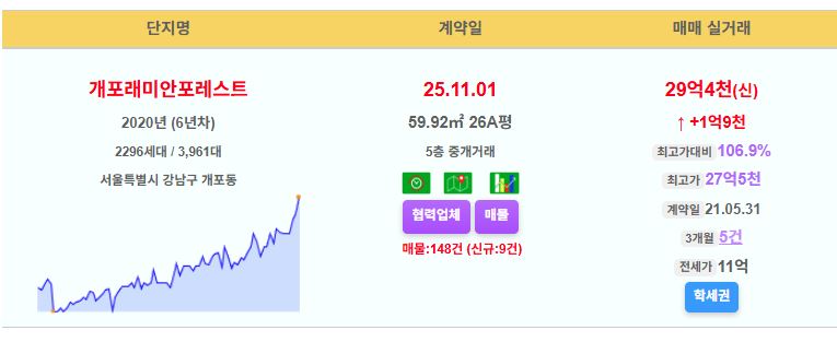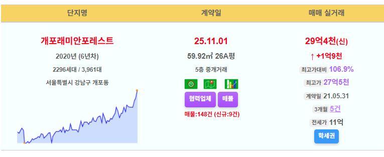 강남구 개포래미안포레스트 26평 29.4억 신고가
