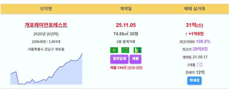 강남구 강남한양수자인(4단지) 34평 20.5억 신고가