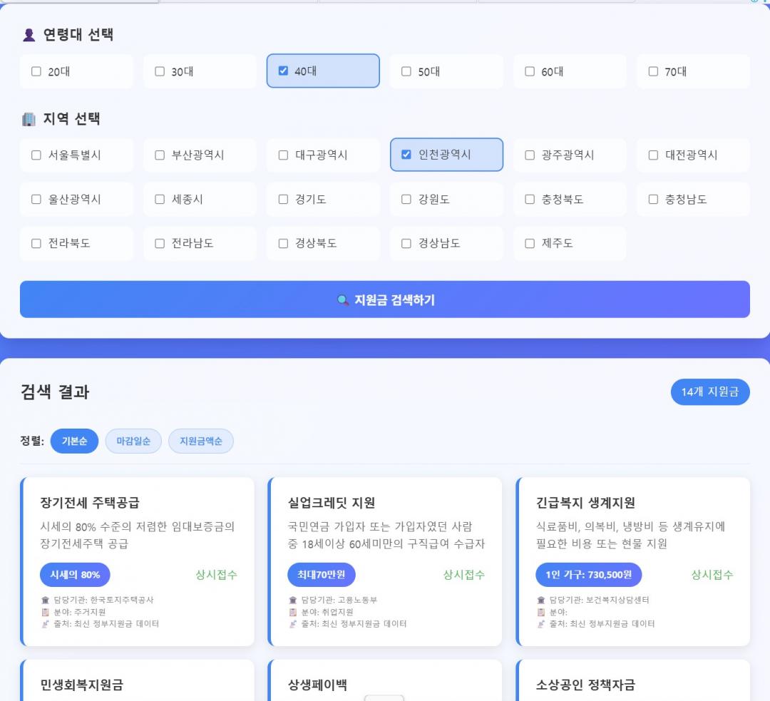 나이랑 지역만 클릭하면 받을수있는 지원금 찾는 사이트 공유드립니다.