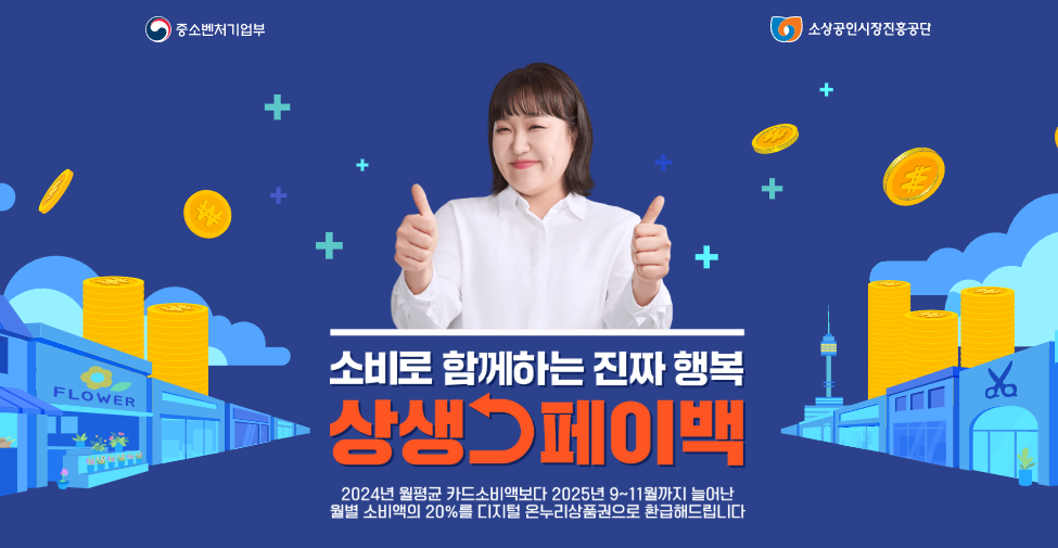 - 무엇 : 상생페이백 — 사용 증가분의 일부(예: 20%)를 디지털 온누리상품권으로 환급 (최대 30만원).