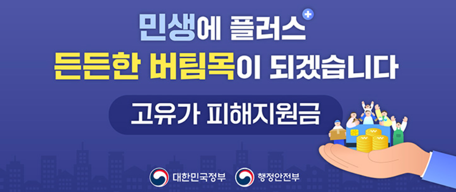 고유가·고환율·고물가로 인한 서민층의 삼중고를 완화하기 위해 정부가 지급하는 지원금으로, 국민의 70%를 대상으로 1인당 10만 원~60만 원을 지역사랑상품권, 신용·체크카드, 선불카드 중 선택하여 지급합니다.