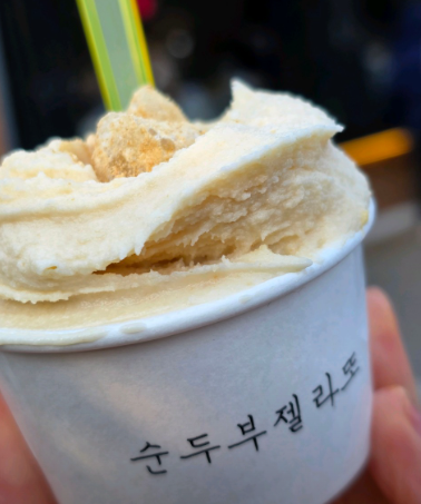 단순히 이름만 순두부가 아니라, 강릉 초당 지역의 순두부 특유의 고소하고 담백한 맛을 그대로 살려 젤라또로 만들어냅니다.