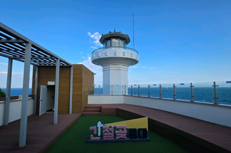 • 바다, 등대, 갯바위 풍경과 꽃밭이 어우러져 이국적인 느낌과 사진 찍기 좋은 배경을 제공해. 특히 꽃잎들 사이 통로와 언덕, 바다 전망이 조합이 좋다는 평
