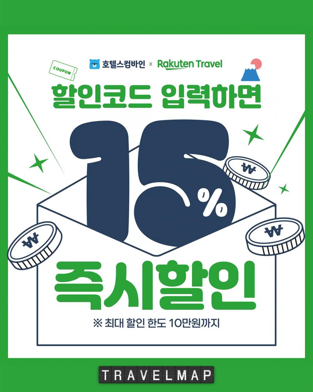 호텔스컴바인 x 라쿠텐트래블 15% 할인코드 프로모션