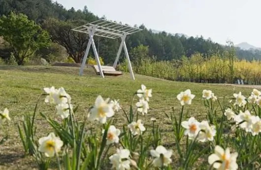 금강 상류를 따라 펼쳐진 풍경과 계절마다 달라지는 과수원의 모습이 여행의 배경이 됩니다.