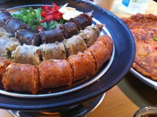 순대 너머로 보이는 김치전이 땡깁니다 ㅎㅎ | ||