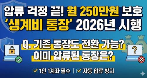 그래서 2026년 2월부터 ‘생계비 계좌(압류방지통장)’ 제도가 본격 시행된다고 합니다.
