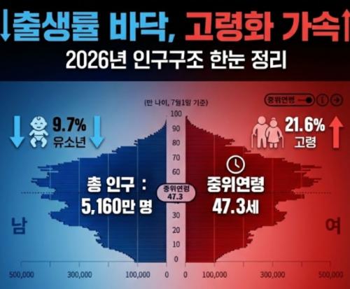 총인구 약 5,160만 명, 중위연령 47.3세로 절반이 47세 이상.