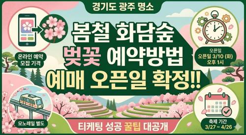 화담숲은 벚꽃도 예쁘지만 모노레일 안 타면 서운하잖아요? 그런데 이게 입장권보다 더 빨리 매진됩니다. 어르신이나 아이와 함께 가신다면 입장권 살 때 모노레일도 꼭 같이 묶어서 결제하세요. 만약 예약에 실패했다면 포기하지 마시고 방문 하루 전날 밤을 노려보세요! 전날까지 취소 수수료가 없어서 취소 표가 꽤 쏠쏠하게 나옵니다. PC보다는 모바일이 결제 단계에서 더 빠른 경우가 많으니 폰으로 접속하시는 걸 추천드려요. 다들 이번 봄에는 꽃구경 성공하시길 바랍니다!