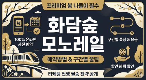 올해는 특이하게 입장권 오픈(3/10) 다음 날, 모노레일 추가 수량(3/11)을 한 번 더 풉니다. 첫날 실패하셨더라도 둘째 날 오후 1시를 꼭 노려보세요. 팁을 드리자면, 가장 인기가 많은 **1구간(편도)**을 끊고 정상에서 내려오며 벚꽃 길을 걷는 게 최고의 사진 명당 코스입니다.