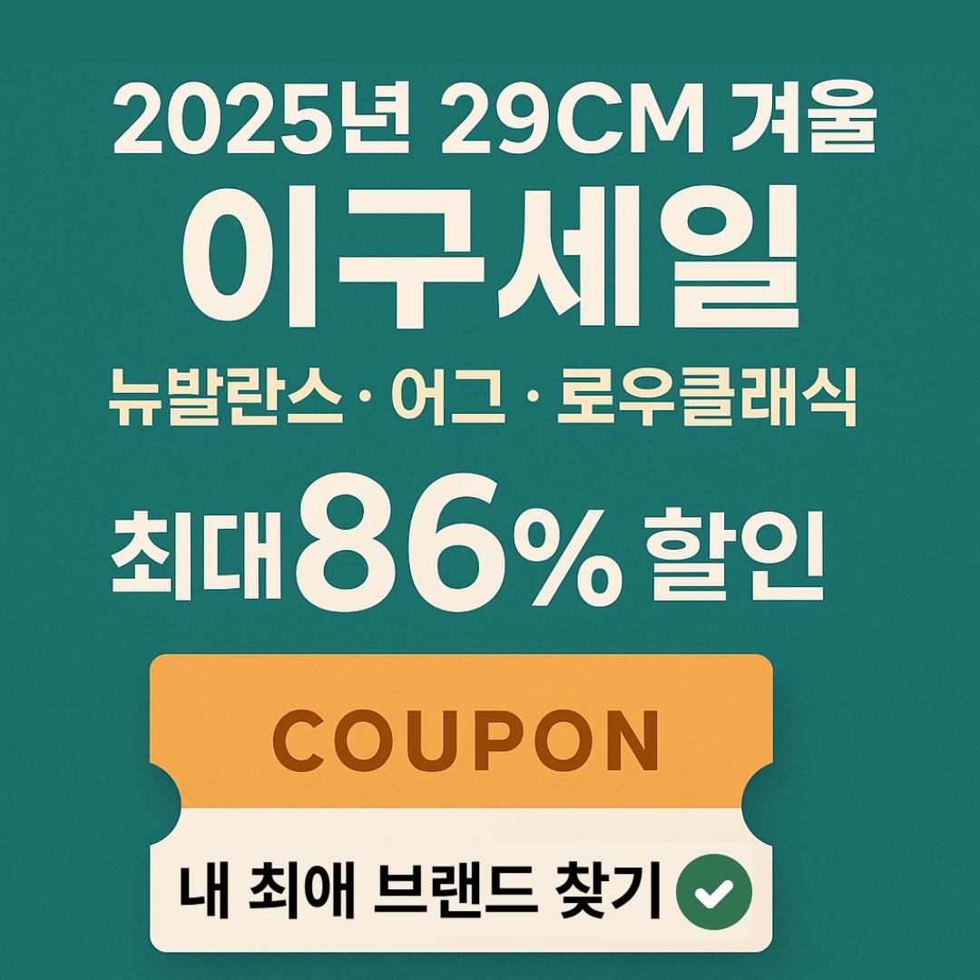 ▶ 2025년 29CM 겨울 이구세일|뉴발란스·어그·로우클래식 최대 86% 할인 + 쿠폰 루트 총정리