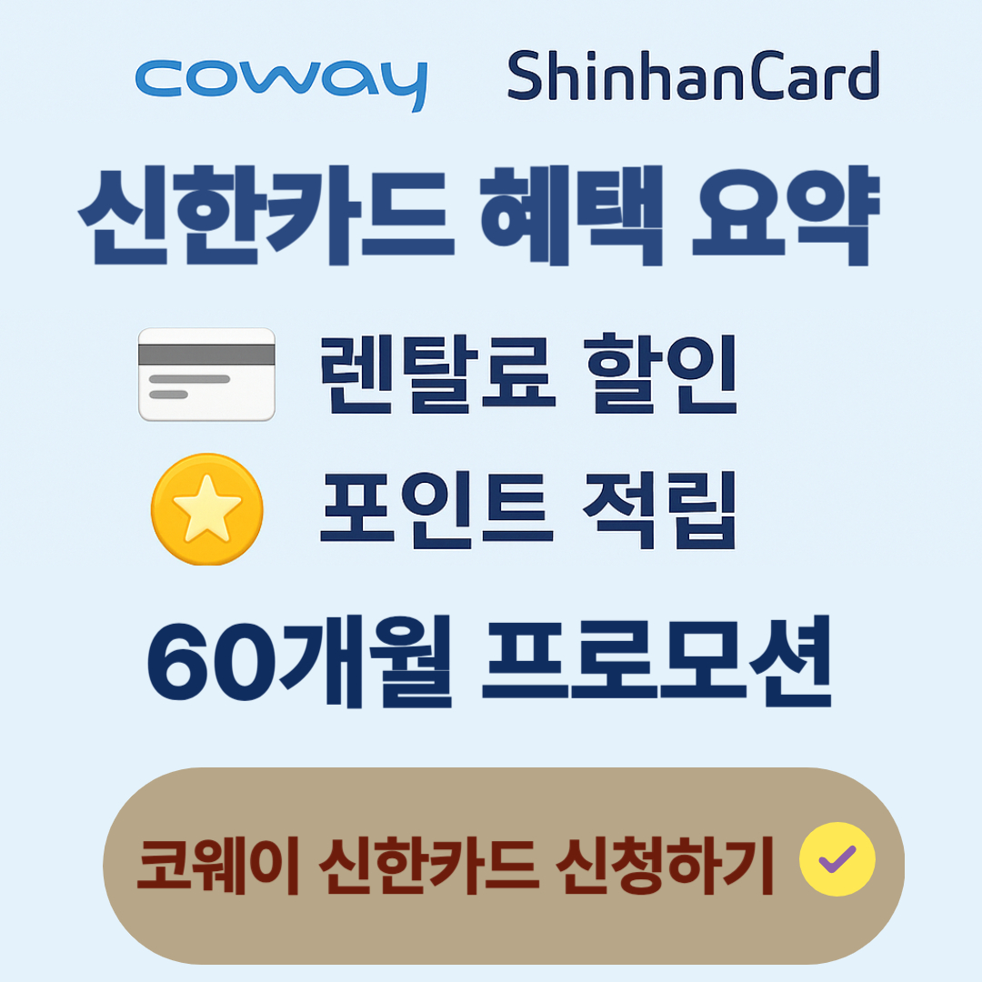 ▶ 코웨이 신한카드 혜택 총정리|렌탈료 할인·포인트 적립·60개월 프로모션 완벽 가이드