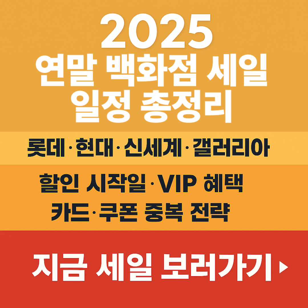 ▶ 2025 연말 백화점 세일 일정 총정리|롯데·현대·신세계·갤러리아 카드 청구할인·VIP 혜택 완벽 정리