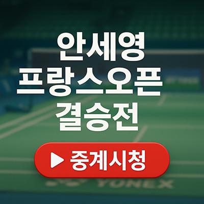생중계됩니다. 팬들은 “덴마크에 이어 프랑스도 우승하자!”라며 안세영의 9관왕 도전을 응원하고 있습니다.