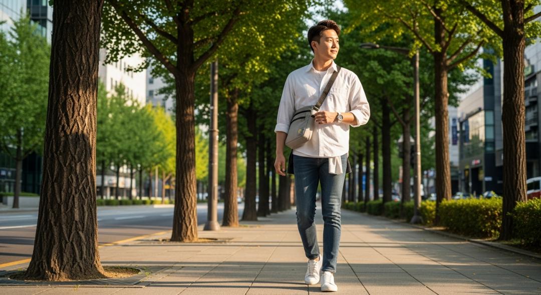 반면 모던한 감각을 살리고 싶다면, 스틸밴드 시계와 크로스백으로 균형을 잡아보세요. 활동적인 느낌 속에서도 고급스러움이 유지됩니다.