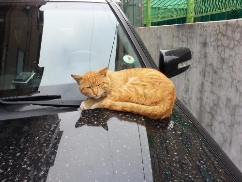 뜨끈한 본넷트에서 꿀잠중 기상.