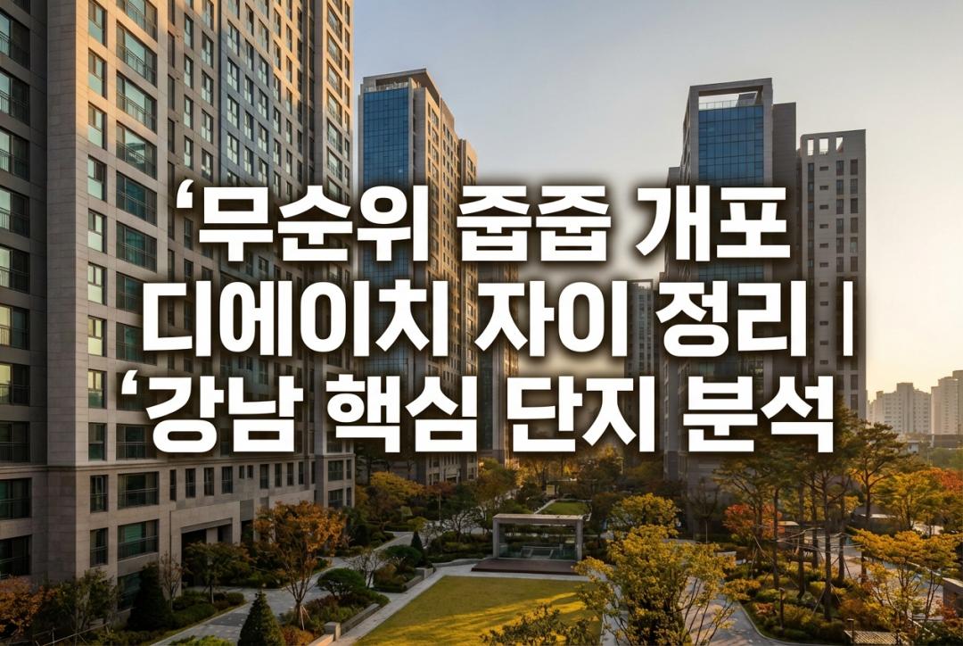 무순위 줍줍이라는 키워드가 등장할 때 개포 디에이치 자이는 강남 핵심 단지 중 하나로 빠지지 않고 언급됩니다. 이미 입주가 완료된 신축 대단지임에도 불구하고 무순위 물량 가능성이 거론될 때마다 높은 관심을 받는 배경에는 명확한 이유가 있습니다.