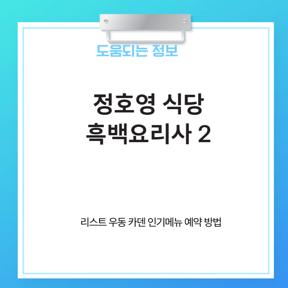 정호영 식당 흑백요리사 2 리스트 우동 카덴 인기메뉴 예약 방법