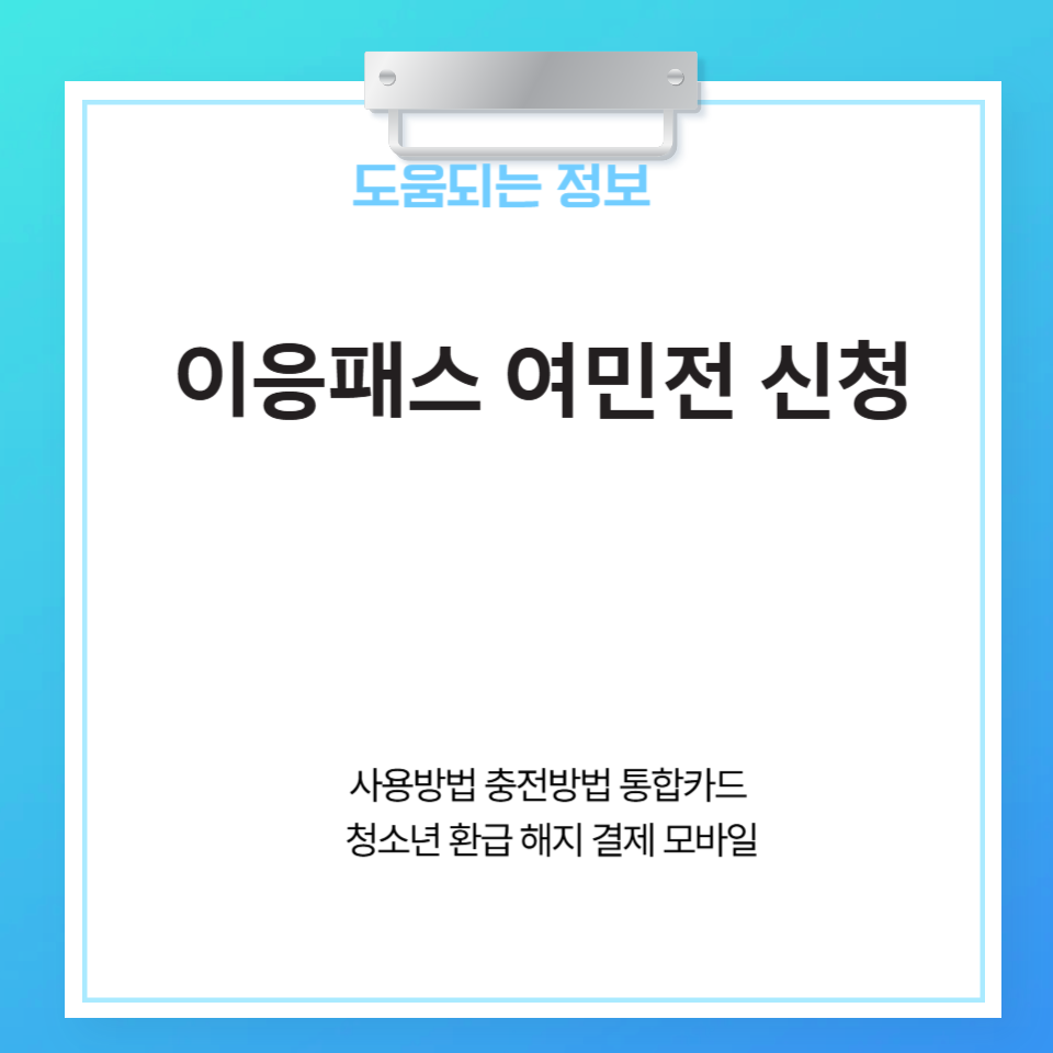 특히 청소년 교통비 환급, 모바일 결제 등 다양한 기능까지 있어 활용도가 매우 높습니다. 오늘은 이응패스의 신청 방법부터 충전, 사용법, 해지까지 하나씩 알려드릴게요.