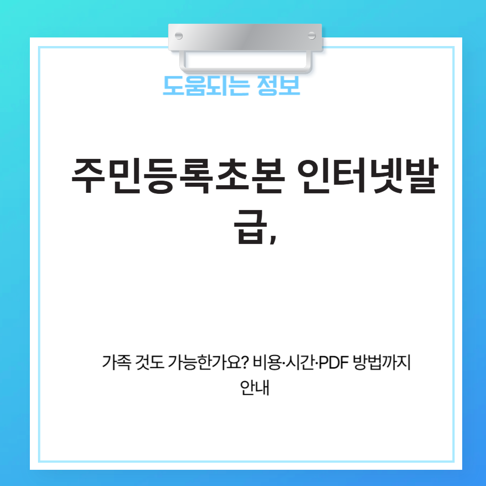 공공기관이나 회사 제출용으로 주민등록초본이 필요할 때, 막상 어디서 어떻게 발급해야 할지, 인터넷으로 가능한지, 비용은 얼마인지, 가족 것도 뽑을 수 있는지 등 구체적인 정보가 잘 보이지 않는 경우가 많습니다.