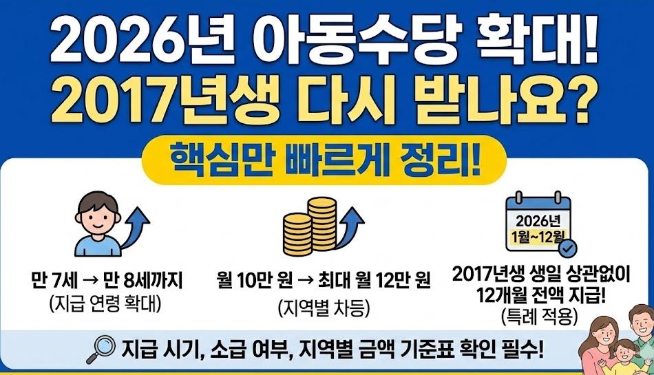 2026 아동수당 2017년생 지급대상 확대 빨리 신청하세요.