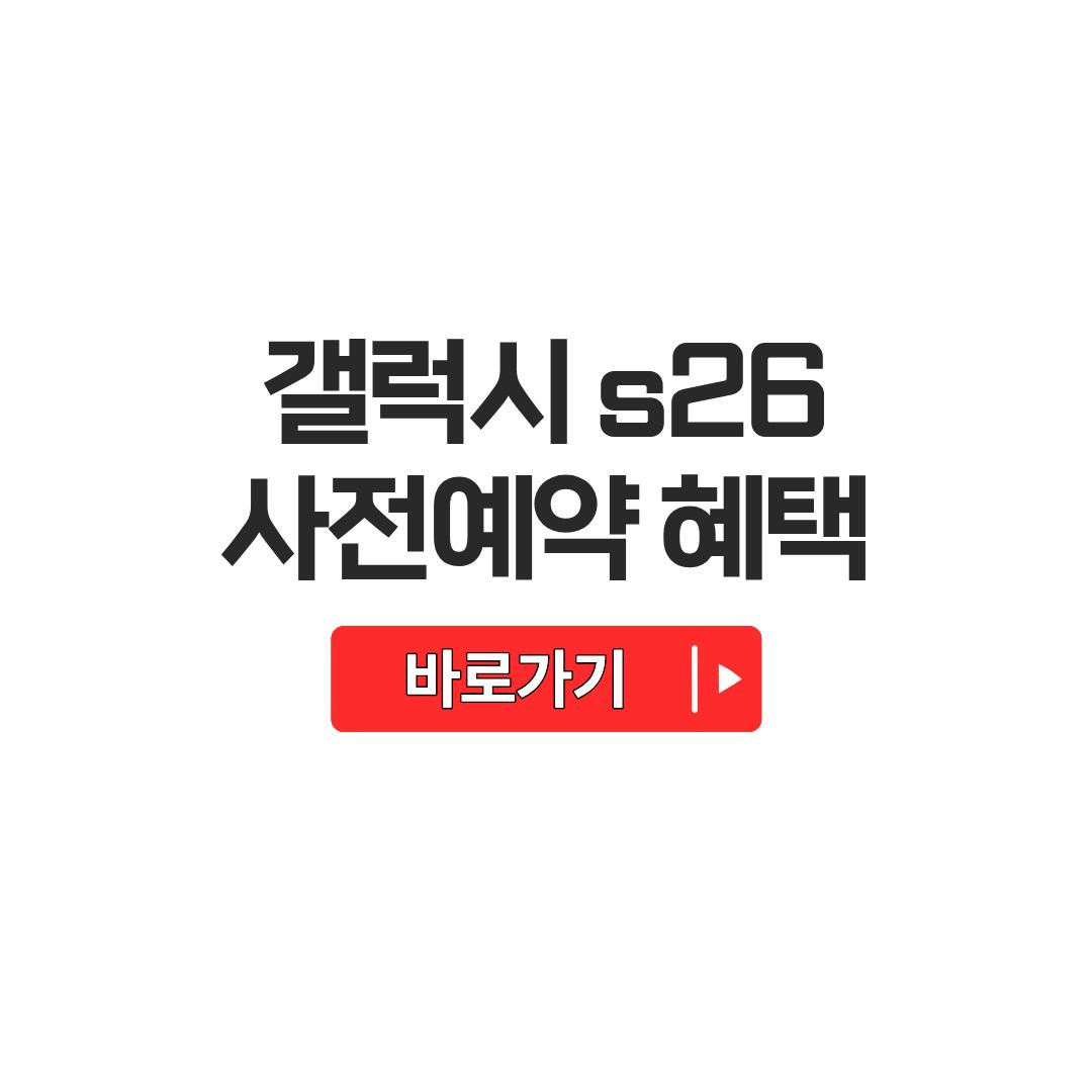 이번 갤럭시 S26 사전예약 혜택, 일정을 절대 놓치지 마시고 스마트하게 구매 준비하세요. 자세한 정보와 혜택 내용을 궁금하다면, 아래 링크를 꼭 확인해 보세요!