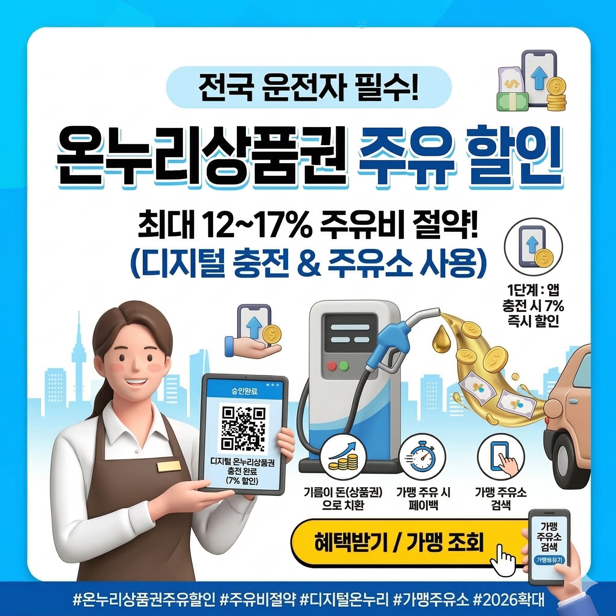 최근 국제 유가 급등으로 주유비 부담이 커지면서 ‘조금이라도 싸게 넣는 방법’이 화제가 되고 있습니다. 그런데 알고 보면 온누리상품권과 지역화폐만 활용해도 최대 12%까지 주유비를 아낄 수 있다는 사실, 알고 계셨나요? 지금 바로 확인하지 않으면 놓칠 수도 있는 절약 방법을 정리했습니다. 주유소 가맹점 조회 유가 급등 속 주목받는 주유비 절약 방법 최근 국제 정세 영향으로 국제 유가가 급등하면서 국내 휘발유 가격도 빠르게 상승하고 있습니다. 실제로 한국석유공사 오피넷 자료에 따르면 일부 지역에서는 단기간에 리터당 200원 이상 오르는 등 체감 부담이 커졌습니다. 이런 상황에서 소비자들이 찾기 시작한 방법이 바로 온누리상품권과 지역화폐를 활용한 주유입니다. 단순 결제 수단이 아니라 할인 효과까지 더해지면서 새로운 절약 전략으로 떠오르고 있습니다. 온누리 주유할인 받기 온누리상품권 사용 시 최대 12% 할인 구조 광주 서구의 사례를 보면 골목형 상점가로 지정된 주유소에서 디지털 온누리상품권으로 결제할 경우 7% 즉시 할인에 더해 5% 페이백이 제공됩니다. 이를 합치면 체감 할인율이 최대 12% 수준에 이릅니다. 예를 들어 7만 원을 주유할 경우 약 8천 원 이상 절약 효과가 발생합니다. 실제 이용자들은 리터당 약 200원 정도 저렴하게 주유하는 체감을 느낀다고 말합니다. 주유소 가맹점 조회 지역화폐 주유소도 할인 혜택 가능 온누리상품권뿐 아니라 지역화폐도 주유비 절약 방법으로 활용됩니다. 일부 지역에서는 지역화폐 구매 시 기본적으로 약 10% 할인 혜택이 제공됩니다. 예를 들어 ‘광주 상생카드’와 같은 지역화폐를 사용하면 월 일정 한도 내에서 할인된 금액으로 주유가 가능합니다. 특히 연 매출 기준 조건을 충족하는 주유소는 지역화폐 가맹점으로 등록할 수 있어 이용 가능한 주유소도 점점 늘어나는 추세입니다. 온누리 주유할인 받기 주유비 절약 방법 비교 현재 소비자들이 활용할 수 있는 대표적인 주유비 절약 방법을 비교하면 다음과 같습니다. 절약 방법 할인율 특징 온누리상품권 최대 12% 7% 할인 + 5% 페이백 지역화폐 약 10% 지역별 할인율 적용 주유소 포인트 카드 1~3% 기본 적립 방식 신용카드 할인 3~7% 카드사별 조건 존재 주유비 절약을 위한 체크 포인트 첫째, 온누리상품권 또는 지역화폐 사용이 가능한 주유소인지 확인합니다. 둘째, 할인율과 페이백 조건을 확인해야 합니다. 셋째, 월 구매 한도와 사용 조건을 체크해야 실제 혜택을 제대로 받을 수 있습니다. 이러한 조건만 확인해도 매달 상당한 주유비 절약이 가능합니다. 마무리 정리 유가 상승이 계속되는 상황에서 주유비 절약은 많은 운전자들의 관심사가 되고 있습니다. 온누리상품권과 지역화폐를 활용하면 단순 결제 이상의 할인 효과를 얻을 수 있으며 최대 12%까지 체감 절약이 가능합니다. 앞으로는 주유소 가격 비교뿐 아니라 결제 방식까지 함께 고려하는 스마트한 소비 전략이 더욱 중요해질 것입니다. 지금 이용 가능한 주유소와 할인 조건을 확인하고, 같은 주유라도 더 저렴하게 이용해 보시길 바랍니다. Q&A Q1. 온누리상품권으로 모든 주유소에서 결제 가능한가요? 아닙니다. 골목형 상점가로 지정된 가맹 주유소에서만 사용 가능합니다. 방문 전 가맹점 여부를 확인하는 것이 좋습니다. Q2. 할인율은 항상 12%인가요? 지역 정책에 따라 다릅니다. 일부 지역은 7% 할인만 제공되거나 페이백 이벤트가 추가될 수 있습니다. Q3. 지역화폐로 주유하면 어떤 혜택이 있나요? 지역화폐 구매 시 기본 할인율이 적용되며 보통 약 10% 정도의 절약 효과를 얻을 수 있습니다. Q4. 월 사용 한도는 있나요? 대부분 지역화폐는 월 구매 한도가 있으며 예를 들어 광주 상생카드는 월 50만원 한도로 할인 구매가 가능합니다. Q5. 앞으로 이런 할인 주유소는 더 늘어날까요? 골목형 상점가 지정 확대와 지역화폐 정책이 확대되면서 상품권 사용이 가능한 주유소는 점차 늘어날 가능성이 있습니다. 온누리상품권 사용 가능한 주유소 지역별 전체 리스트 아래 리스트는 디지털 온누리상품권 앱 가맹점 검색 기준으로 정리했어요. 방문 전 전화 확인을 꼭 권장합니다. 폐업 변동이 있을 수 있어요. 서울특별시 지역 주유소명 주소 전화 결제 양천구 신양주유소 양천구 지양로 67 (신월동) 02-2608-3312 QR, 카드 경기도 지역 주유소명 주소 전화 결제 가평군 동현주유소 조종면 청군로 1303 031-****-5189 카드 가평군 현리주유소 조종면 현창로 64 031-****-0236 카드 가평군 대성주유소 조종면 청군로 1184 번호없음 QR, 카드 파주시 광탄주유소 광탄면 혜음로 1135 031-****-7421 QR, 카드 파주시 광탄중앙주유소(GS직영) 광탄면 혜음로 1163 031-****-5152 카드 용인시 두창주유소 기흥구 언동로 197 031-****-7638 카드 광주시 삼동주유소 순암로 472 031-****-5151 카드 충청도 (충남 / 충북) 지역 주유소명 주소 전화