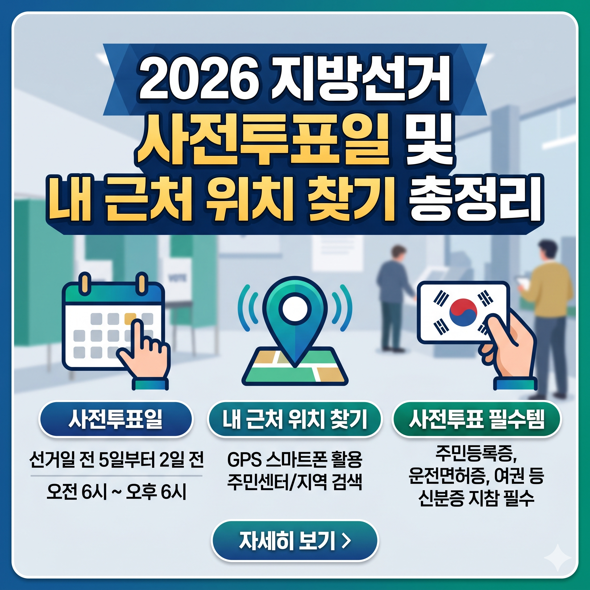 선거 당일, 갑작스러운 일정 때문에 소중한 한 표를 포기하셨던 경험 있으신가요? 2026년 지방선거는 ‘사전투표’ 제도를 활용하면 훨씬 여유롭게 참정권을 행사할 수 있습니다.